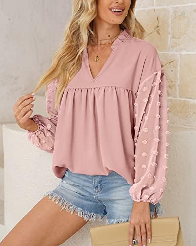 Clarisbelle Women’s V Neck Swiss Dot Lantern Sleeve Chiffon Ruffle Shirt Top Review