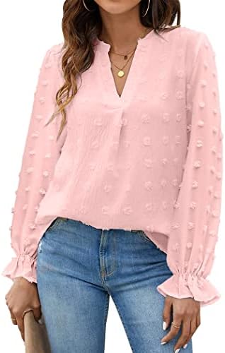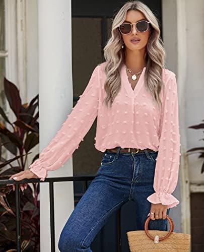 Hotouch Womens Long Sleeve Blouse V Neck Casual Shirts Loose Chiffon Tops Dressy Review