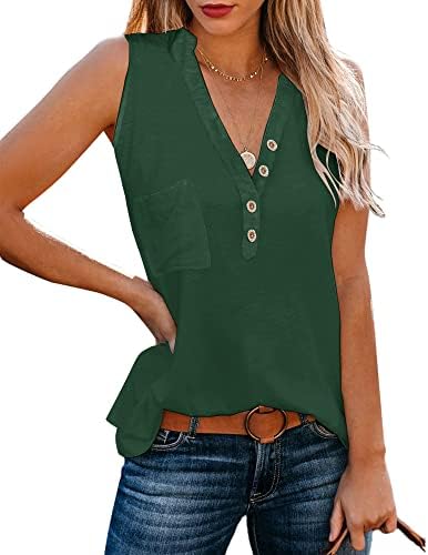 Sunborui Women’s Button Deep V Neck Sleeveless Tank Tops Summer Casual Loose Pocket T Shirts Blouse Review