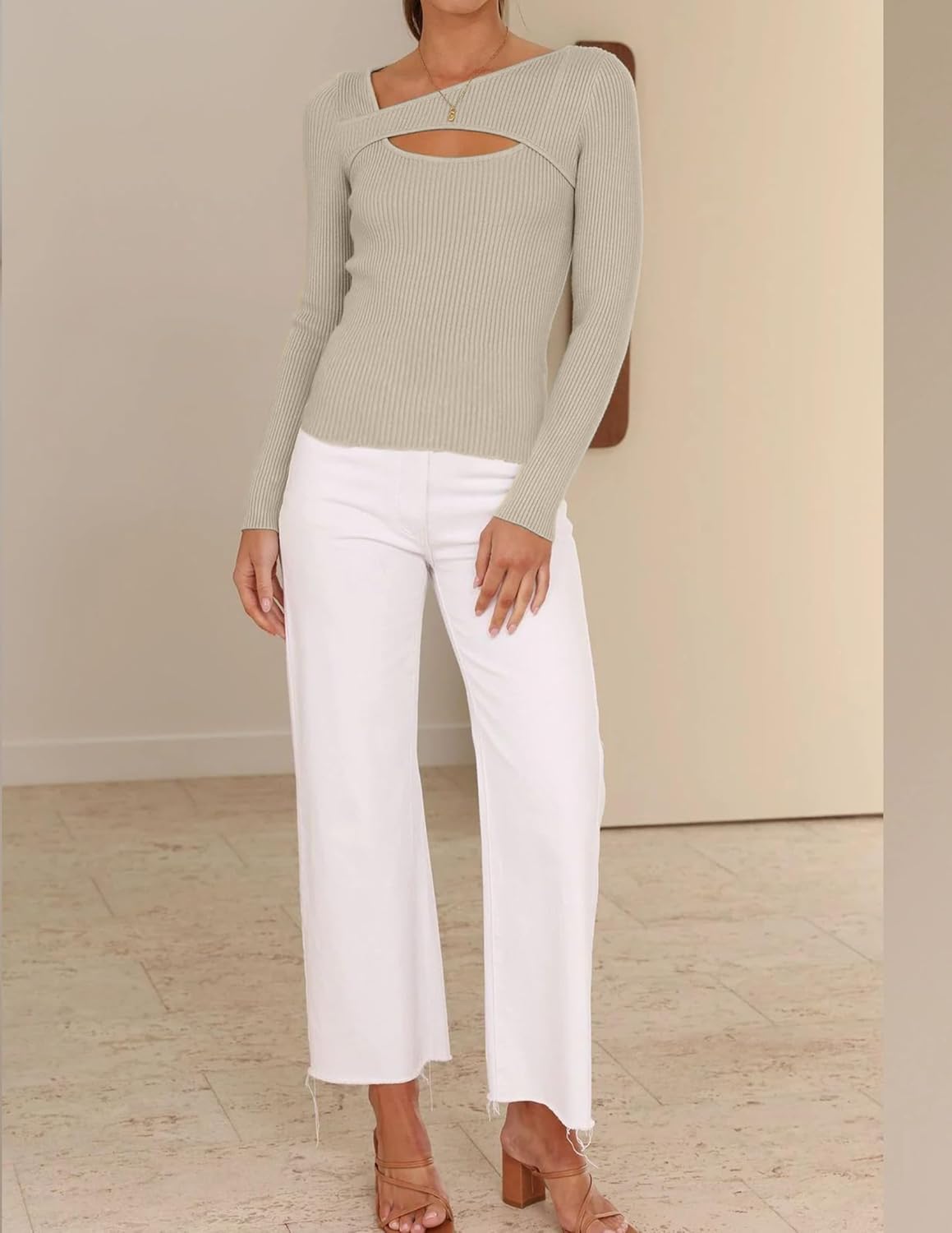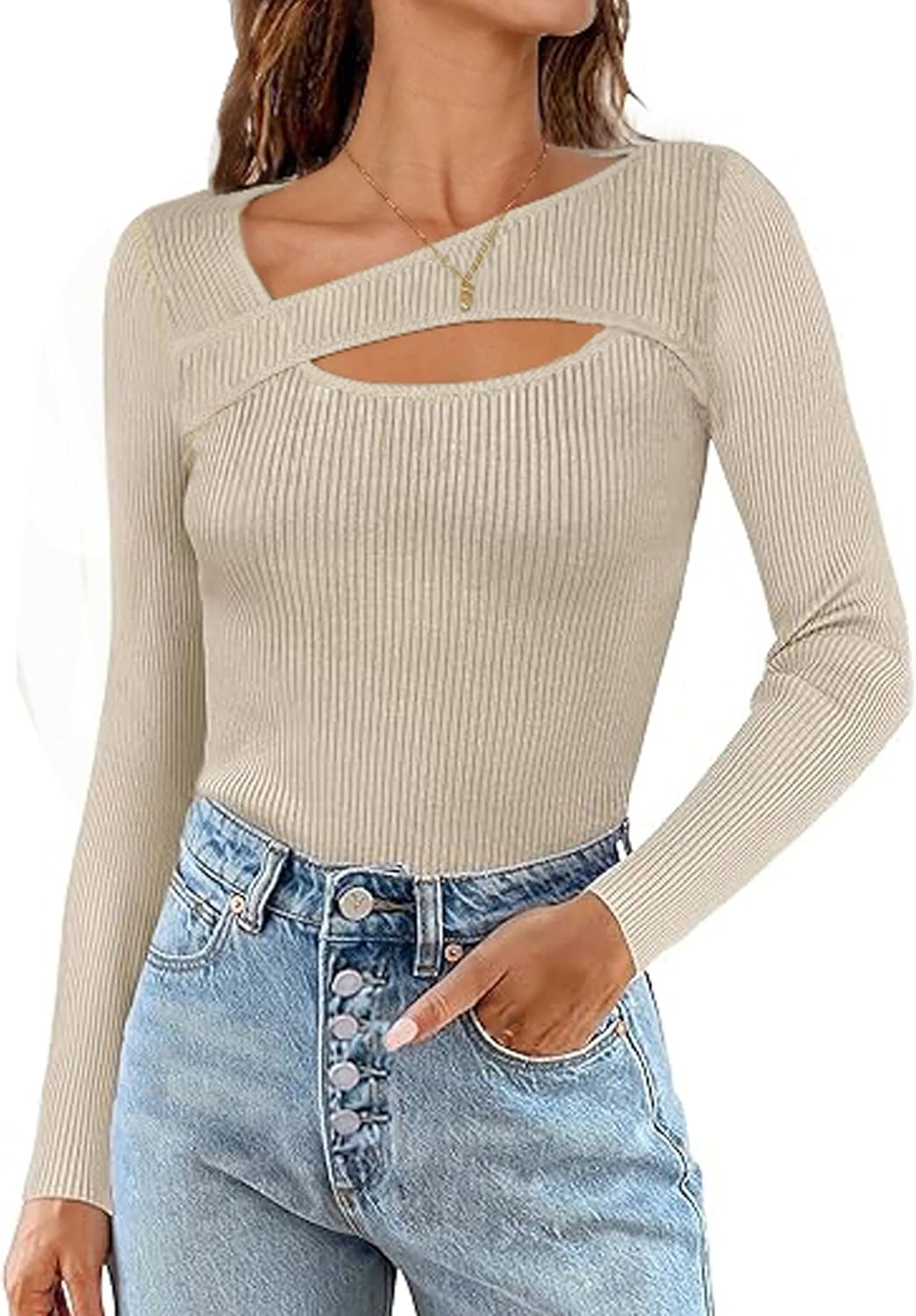This review is about the Women Long Sleeve Knit Sweaters 2024 Cutout Tops Fall Winter Going Out Tops, a unique and stylish piece of clothing that has taken the fashion world by storm. The focus keyword being used here is Long Sleeve Knit Sweaters and will be appearing throughout the content.
