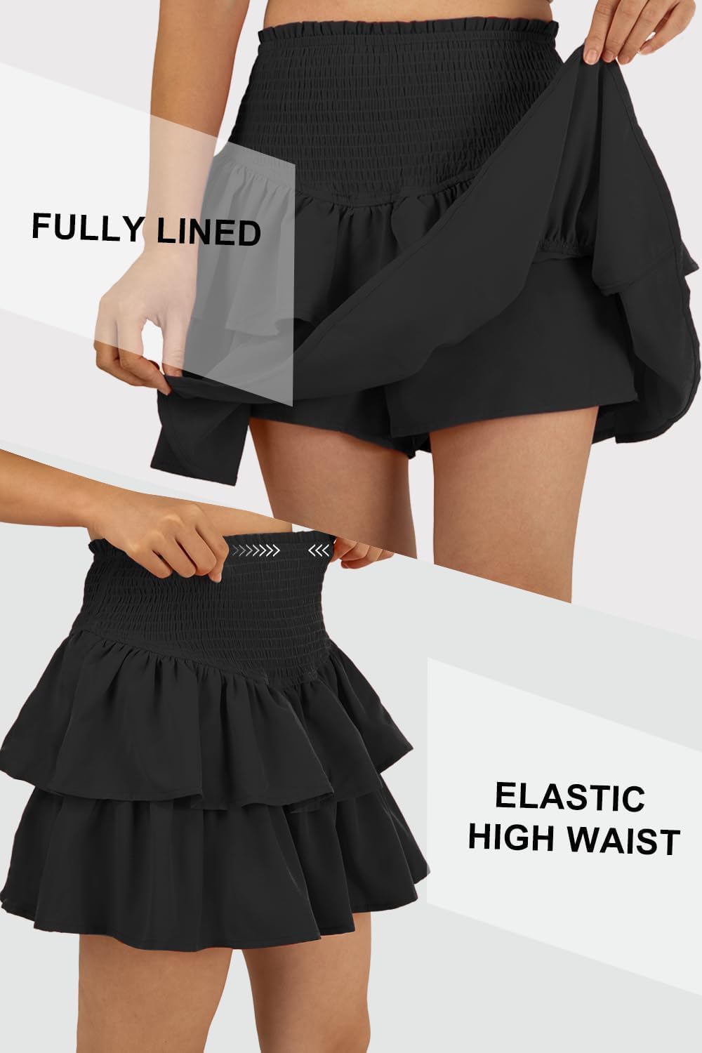Focus Keyword: Women’s High Waist Ruffle Mini Skirt Cute Tiered Short Skirt with Shorts Underneath